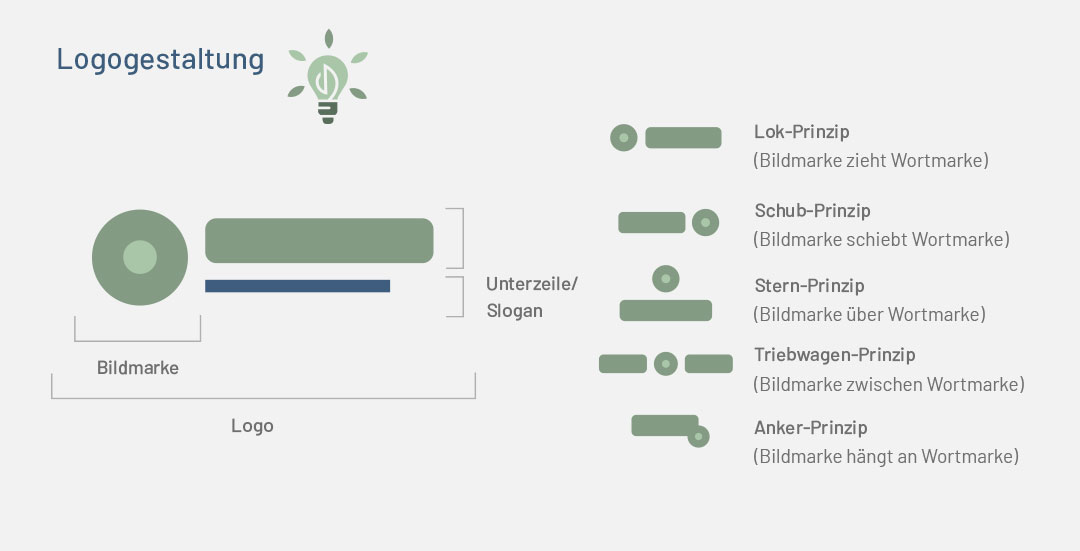 - Schub-Prinzip: Die Bildmarke schiebt die Wortmarke.